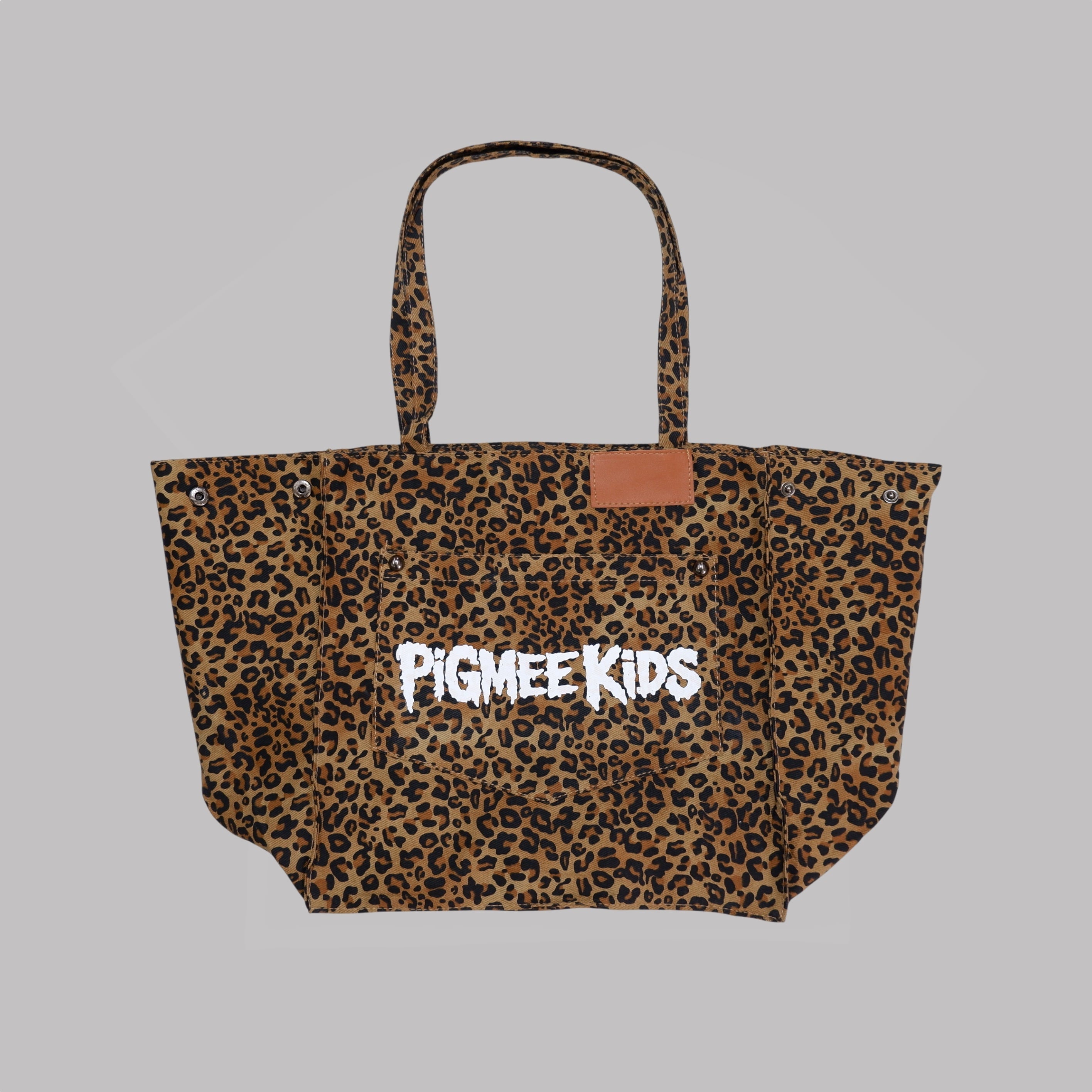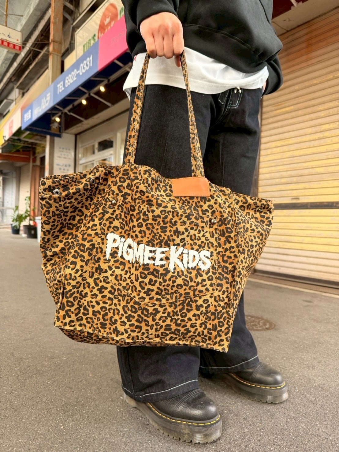 LEOPARD TOTE BAGは、目を引くヒョウ柄デザインと、PiGMEE KIDSの魅力的なイラストが特徴のトートバッグです。大容量で、MacBookや大きなうちわもすっぽり入るため、日常使いに最適です。また、バッグの端には調整可能なボタンがついており、自分好みのサイズに変えられるのも嬉しいポイント!軽量な素材感で、持ち運びのストレスを軽減してくれます。